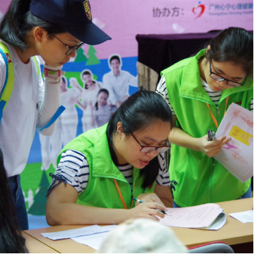 参与活动的同学们到达目的地后,参观了员村家综的环境,并且组建成“超能社工”义工队。在工作人员的指导下,“超能社工”义工队分为道具组、安保组、摊位组、机动组、领奖组共五个小组,参与到“家庭暴力零容忍,你我携手齐说NO”活动现场中去。