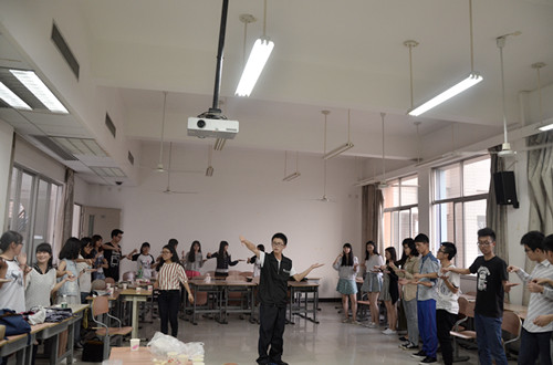 紧接着进行的是游戏环节。第一个游戏是猜形容词,大家被主持人曾继婷欢乐的性格感染,常常忍俊不禁。游戏输了的同学接受唱歌的“惩罚”,大家因此欣赏了不少好声音!第二个游戏是由吕候丞同学带领大家玩的一个考验反应力的游戏,同学们都很积极地参与并且现场气氛活跃。