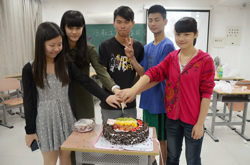 2014年3月27日晚5点30分,由社工班班委们策划的三月生日会暨建班200天庆祝会在教学楼B307成功举行。本次活动由曾继婷同学和罗浩天同学主持,13社工班的大部分同学都准时来到活动现场。本次生日会主要分为三部分:自助餐环节、游戏环节和庆生环节。