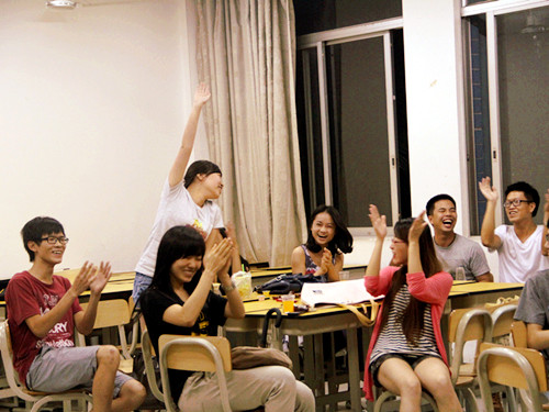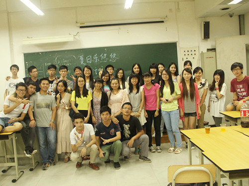 夏日炎炎,期末将至,趁着刚考完六级的喜悦心情,2013年6月15日19:30——21:30,11行一在A303举行了“夏日乐悠悠”欢乐班会。这次班会是本学期的最后一次班会,同时也是11行一班委新换届后的第一次班会,旨在让大家能够在考完六级英语后一起放松一下,并动员同学们备战即将来临的期末考试。新上任的团支书伍颖仪和体委陈坤明主持了本次班会,助班高良炎和班上的35名同学到场参与。