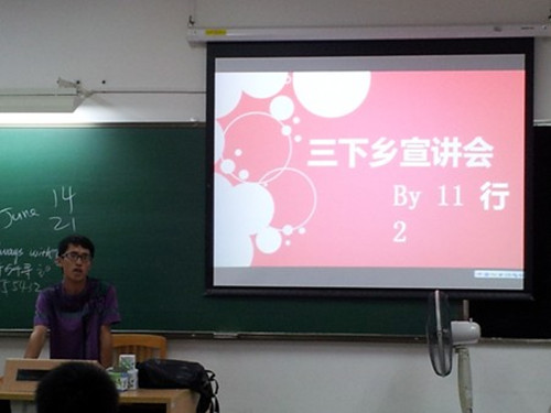 5月30日18:30,11级行政管理2班在E405举行了三下乡宣讲会。宣讲会由11行二新一届班长马伟健主持,特别邀请了10行二上一年的三下乡队长陈勇灿师兄与我们分享经验。