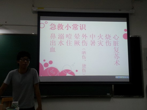 各小组展示完毕后,班长向各位同学强调了急救的应急处理方式,让同学们在三下乡活动中注意自身的安全。
