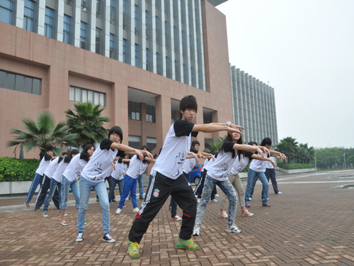 同学们在图书馆前练舞