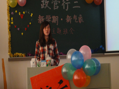 然后,助班陈楚烽发表讲话,主要是给我们介绍一些关于新学期的经验和建议。讲话期间,助班主要就一些我们会遇到的问题进行说明,双专业、四六级考试及入党问题等;他还指出了我们要建立良好的圈子,找到自己的兴趣,不断充实完善自己,特别是要知道自己真正需要的是什么,端正学习态度,不应盲目跟风,而是要敢于追求自己想要的,并为之努力奋斗。