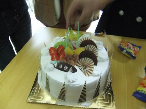 班会的第一个环节是传统项目——庆生。10社工的班委们为寿星们精心准备了蛋糕和好玩的游戏。第一个游戏是看图识人,PPT上轮流播放由寿星们照片中截下的某个部位,然后请同学们猜是谁,最先猜对的同学即可获小奖品一份。看来10社工的孩子们对自己的同学太了解了,图片一出现在屏幕上,大家就一起报出了答案,以至于不知道要把奖品给谁。此游戏中一度出现爆点,大家笑得前俯后仰。第二个游戏便是互喂蛋糕,寿星们两两一组,分别蒙上双眼,听旁人指挥,轮流将手中的蛋糕喂给对方吃。一些爱捣蛋的同学故意说错方向,寿星们不是把蛋糕喂到了对方脸上就是喂到了衣服上,惹得大家狂笑。