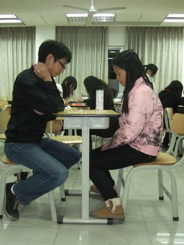 搞笑又温馨的庆生环节过去后,第一届10社工棋牌大赛便拉开了帷幕。此次大赛项目分为两大类,棋类和牌类。棋类有象棋,五子棋,跳棋,飞行棋,军棋,牌类有UNO,三国杀。每个项目采取抽签制,选手按抽到的签选择对手进行对决。一安排完赛程,大家就迫不及待地开始了比赛。有的飞行棋的选手一掷出“六”便拍手叫好,有的象棋选手为自己下了一步好棋而暗自得意。