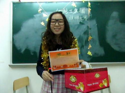 在进行了一轮轮的初赛和决赛后,终于每个项目都决出了一名总冠军。冠军获得了属于自己的荣誉称号,还获得了丰富的零食大礼包一份。唐铭桧同学在这次比赛中摘得了跳棋的桂冠,收获颇丰,她拿着奖品笑容满面地说:“这样的活动让同学们展示了自己的特长,又娱乐了身心,希望能一直举办下去。”就这样,第一届10社工棋牌大赛在同学们地欢笑声中愉快地落下了帷幕。