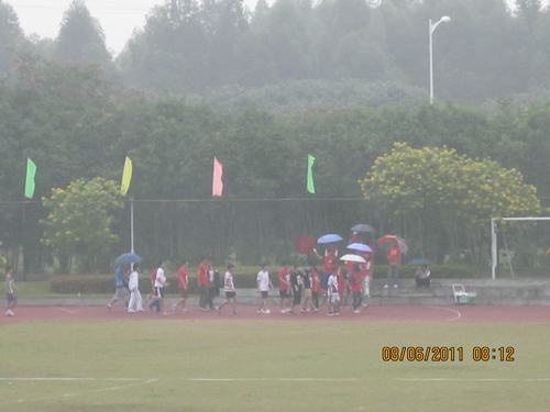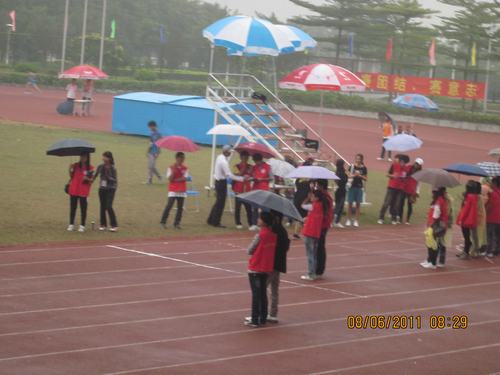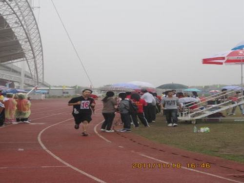 11月18日,是校运会的第二天,当天下午,要进行5000米的长跑项目,10行一的张钧棠同学参加了本次比赛。当时,天空下起了濛濛细雨,可是这丝毫没有阻止运动员们的热情,似乎这样的天气,让他们更有冲劲,更加想要克服这个困难了。你们看,张钧棠同学在跑道上热身呢,蓄势待发,已经做好了充分的准备。