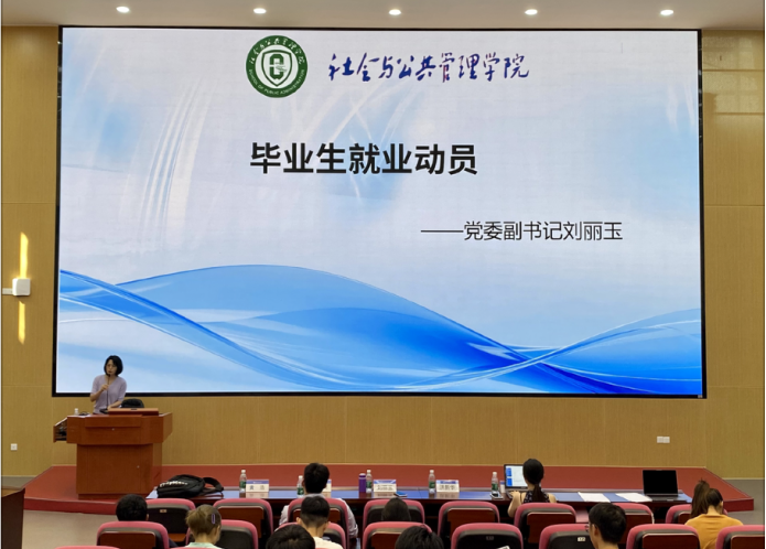 会议伊始,学院党委副书记刘丽玉做毕业生就业动员,她指出同学们对待毕业应“心怀敬畏”,认真盘点、合理规划;应“全力以赴”,“把找工作当工作”;应“结伴而行”,整合老师、同学、家庭、校友等力量,温暖而安全地前行。