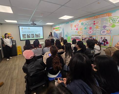 首站,研学团来到乐群社会服务社太子社区客厅。项目主管谢家洛详细介绍了该项目的服务对象、内容及成立以来的各类实践活动。在围绕“困境家庭社区空间支持服务”专题的互动交流中,同学们踊跃提问。谢家洛在解答时强调,社区客厅的目标是成为居民真正的“客厅”,通过建立相互尊重、互助互惠的关系,促进邻里和睦与个人成长,让每位服务对象都能自信自强、全面发展潜能。随后,谢家洛和助理总干事Fiona带领师生实地参观,讲解各区域的功能设计与空间布局。参访尾声,陈美招主任代表学院向中心赠送锦旗以示感谢。