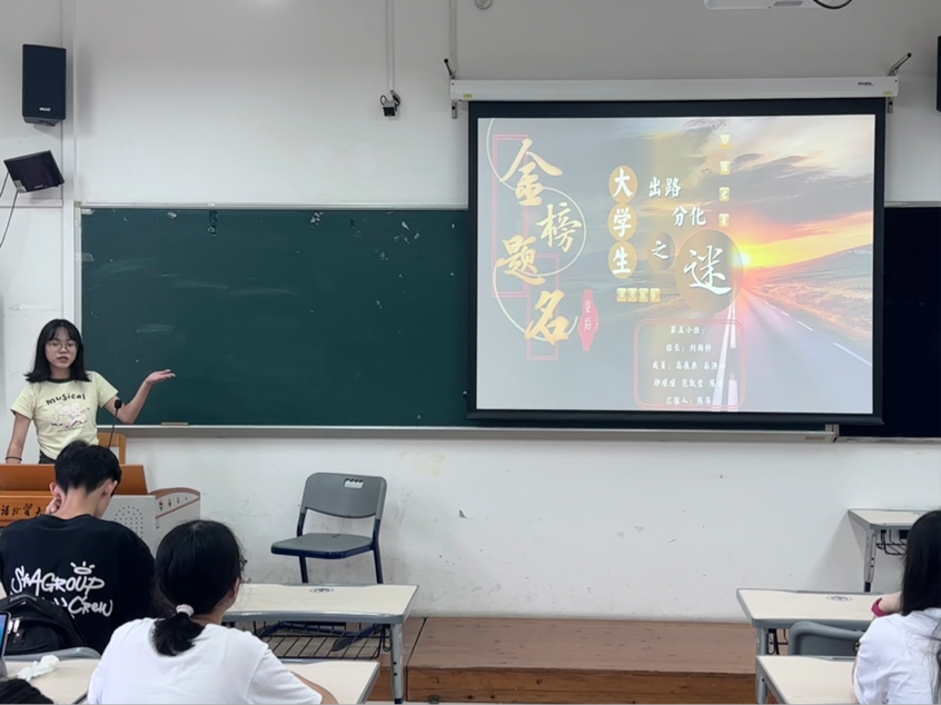 读书分享会活动正式开始,小组代表依次上台发言,就《金榜题名之后:大学生出路分化之谜》一书展开叙述,发表自己不同的见解。