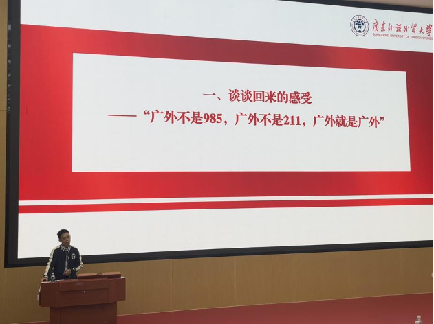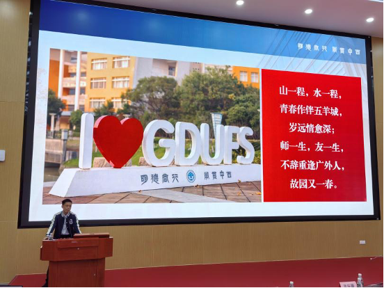 讲座伊始,吴宏豪校友以“广外不是985,广外不是211,广外就是广外”的深情感慨拉开序幕。他结合自身在广外的求学经历,分享了当年参与“三下乡”暑期社会实践、政管学院调研大赛、第105届广交会实践等珍贵往事,一张张老照片、一段段奋斗历程,不仅勾勒出他在广外从青涩学子到成熟骨干的成长轨迹,更饱含着对母校培育、学院关怀的感恩之情。“正是在公管学院的土壤里,我学会了如何在学生工作中扛责任、解难题。”吴宏豪校友言语间满是对母校的眷恋,他亲切热情的分享风格、谦虚稳重的言谈举止,迅速拉近了与现场学生的距离,不少学生边听边记录,现场不时响起共鸣的掌声。