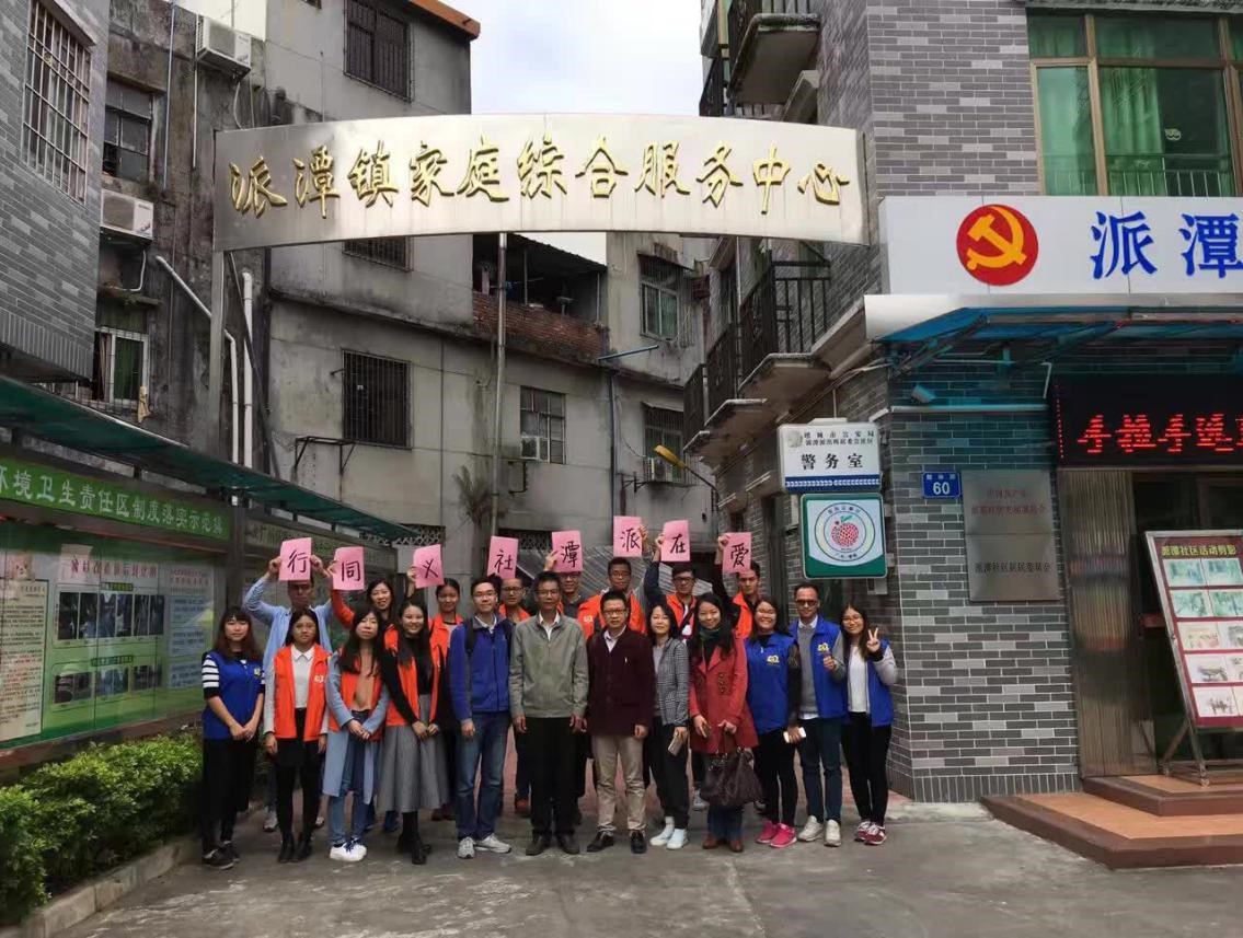 为落实学校党委关于在大学生活中开展“铸魂系扣”工程项目的有关精神,12月23日,政管学院社会管理专业研究生和社工专业、心理学专业的本科生在学院党委高云坚书记以及社工系党支部书记陈胜老师的带领下来到增城区派潭镇家庭综合服务中心开展志愿服务活动,走进基层,走进社区,以所学专业对接服务社区。广东省社会组织研究中心副主任涂斌、政管学院社工系主任刘春燕、公管系云山青年学者李佳源等一同前往开展调研。