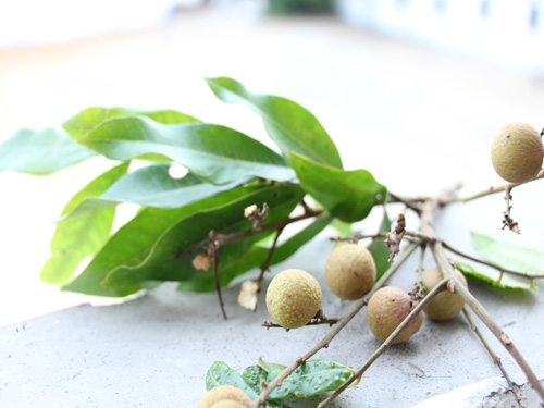 借了他们特制的摘龙眼的长棍。很简易的棍子,顶端开叉,对准一串,卡住,使劲往下一扯,整串便可以从枝头断落,伴随着龙眼坠地的,都是激动的欢呼声。看似简单的动作,对于从没接触过的我们,还是有难度的。棍子很长,重量还是有的,要稳稳当当撑起来,卡住后,总也没法一下就扯断它们,只会零散地掉落几颗。旁边的人,却也很兴奋地奔上前捡起,剥开便塞进嘴里,脸颊鼓起一边,核也不吐出,又眼巴巴望着枝头,期待又有龙眼被扯落下来。