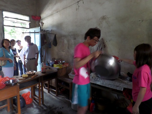 今天周日,在忙碌了一周之后,同学们纷纷选择了休闲放松,所以在厨房帮忙的人比较少。又由于是周日,不用分心在教学区照顾小朋友,所以我得以全身心投入到后勤工作中。