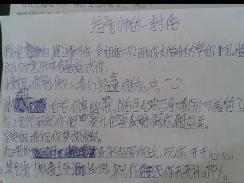 那天二班的语文课由我主讲,在为他们复习完前天教的诗句后,我布置了一个作文题目给他们——给老师的最后一封信。在这短暂的十几分钟里,这才发现其实每个人心里都有一个白雪公主和一个后妈。
