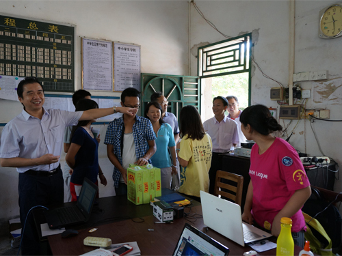 上午11点左右,寿场初级中学校长陈启源、副校长卢土扰等领导在校门口热情地迎接了顾也力副校长一行的到来。在陈校长等人的陪同下,顾也力副校长一行走访了队员饭堂、宿舍等地,了解三下乡队员的基本生活情况。在此过程中,卢景辉副校长告诉队员们要注意的安全细节问题,同时表扬了服务队做得好的地方,此一番话使得队员们深受鼓舞,继续改进工作。此外他们还到教学楼考察此夏铃溪服务队的课堂教学情况,倾听队员们在下乡支教过程中遇到的困难,为下乡队伍的发展提出具有建设性的意见。