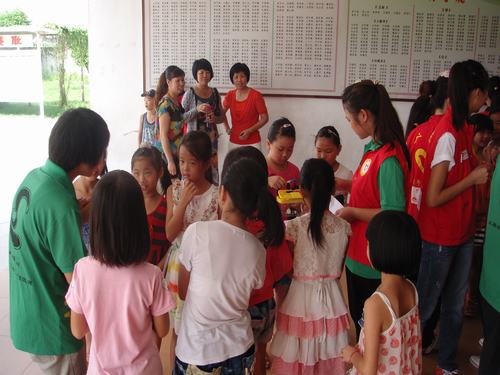 在黄晋硕幽默诙谐的介绍之后,为了能让“小老师”们尽快地与同学们熟悉起来,更好地开展义教活动,各队员积极地与小学生们聊天拉家常,玩小游戏等。有的小朋友十分活泼开朗,一直拉着宣传组组员给他们拍照和积极地参加每一个小游戏;有的小朋友则比较害羞,不过在队员们的努力下,他们逐渐参与了游戏,融入到了活动中。