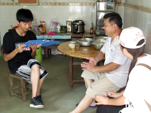 调研组环视了周围的环境后,为提高效率,分成了独立的四组分方向进行调研。跟随着其中一组的调研队员朝左边方向展开调研。远处就看见有个满头银发的老伯在一家便利店里闲坐着,我们靠近了那家店,有礼貌地向老伯打了声招呼,简单地介绍了自己,没有意外的冷眼,老伯欣然地接受调研,全程就像故人聊天般,轻松自然,我们很快就掌握了当地的大概情况,这使接下来的调研不显得那么僵硬,被动。接下来,我们沿路逐家访谈,调研得到信息量慢慢扩大,慢慢进入一个更加主动的状态。