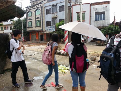 经过前几天在镇上转悠调研,以儒洞中学为中心的大部分地区已经布满了我们的足迹。因此,今天我们走得更远,深入较为贫穷落后的儒洞镇住宅区。令人感到伤心的一点就是,今天调研的拒绝率相比于前几天还是比较高的。愿意填写问卷的年龄较高的伯伯阿姨很多都需要我们口头翻译整份问卷,这一定程度上拖长了每一份问卷完成的时间,所以今天的调研成果并不算特别地丰厚。