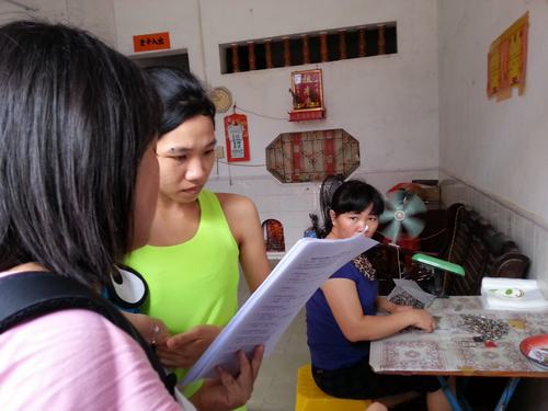 不过值得欣慰的就是,相比于广州这样的现代化大都市,仍属于农村地区的儒洞镇居民都十分地友好和蔼。调研几天以来,我个人都没有遇到过被居民打断填写问卷之前的介绍调研基本情况和目的的进程。有些居民还热情地请我们进他们家中坐,甚至抓了一大把糖果额水果给我们,这确实让奔波了一整天的调研成员们感到大大的温暖。更无所畏惧脚酸和困难。
