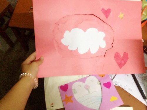 哦,原来他也是在做贺卡,这个小坏蛋肯定是上课不认真,现在在赶制他的作品吧。我悠悠地想着,便笑着坐在他旁边静静地看他继续认真地做。不久后便离开了课室。