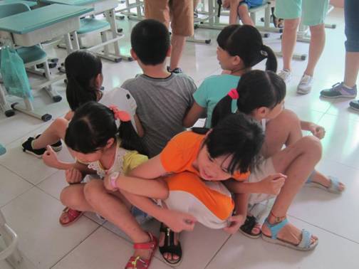 在9:20-10:50这一时间段,我们五个班级开始进行今天的重点任务--特色活动。在每一个班主任的有序组织下,我们的特色活动正在如火如荼地举办中。我们准备了五个活动:你比我猜,坐地起身,盲人三角形,超级接力跑,爱的抱抱。在班主任对规则进行讲解之后,助教在一旁辅助学生进行活动环节。在每一个班级里面都充满了学生与教师与助教的欢声笑语。学生们的率真与可爱成为了一道道靓丽的风景线。在教室里的游戏环节结束之后,助教有序地带领着学生往操场去进行另一部分游戏环节。即使阳光很晒,却依旧挡不住学生对游戏的喜爱与热情。在体育老师的领导与其他助教及老师的联合组织之下,我们的户外活动虽然在一开始出现了学生不听从指挥,但是在接下来的活动之中,我们的活动最终还是顺利地举行完毕,在一声声欢呼声中,我们的活动划下了完美的句号。