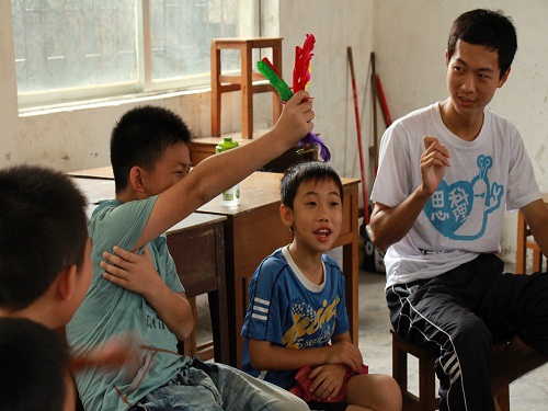 7月20日,由广东外语外贸大学12级应用心理学系“爱在当夏”义教服务队在阳西县儒洞镇中心小学举办的“心里有你”快乐成长系列特色活动三步曲之第一部——“放飞心田”活动在“西马仑”台风带来的大雨中拉开了序幕。