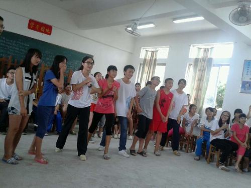 在办公室集合完毕,明确工作任务后,我们开始加入小朋友们的队伍。一开始,小小的课室似乎并没有因为狭小的空间就容易将大家的激情互相感染,有点乱乱的,些许喧闹。在策划组的努力下,场面终于hold 住了,这也暗示着,我们的趣味小游戏在揭开序幕。
