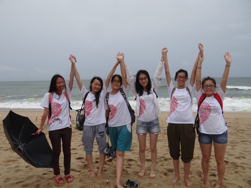 今天下午趁着大家没事干,我们24位同学去了月亮湾和沙扒湾游玩。虽然天一直下着雨,但阻挡不了我们大家的热情,我们一路撑着伞,光着脚走在沙滩上。看着海浪,听着海的声音,我莫名其妙有了一种恬静感,似乎减轻了我们即将离开这里的痛苦。