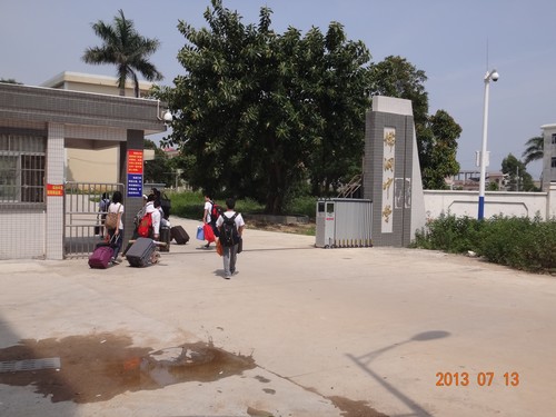 那一天,拥有十几天里唯一灿烂的阳光的中午,我们终于在一路的颠簸与疲惫中到达属于我们这些毛毛虫的儒洞。一开始的我们,对儒洞中学的一切都感到是那么的陌生与不适。再熟悉不过的卫生清扫也显得有点毛手毛脚;买菜煮饭也要那么拖拖拉拉,七嘴八舌;开个会也要一个多小时……所有的所有,在现在看来都显得有点傻乎乎的。已熟悉适应阳江节奏的我们,就算是闹钟让自己贪睡了那么十几分钟,也不会感到慌张,也会在规定的时间里出现在规定的地点;就算是再远的菜市场也会找到熟悉的道路;就算是再理论化的课程也会洋溢着欢乐活泼的气氛。