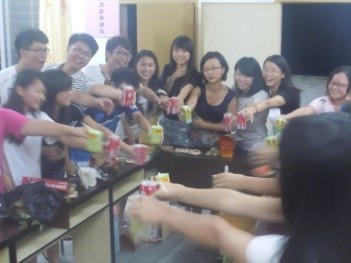 有生日蛋糕,当然不能错过涂忌廉的环节啦。大家拿起手中的蛋糕,拿起忌廉,追着人往他们脸上涂。还不够尽兴?那就喷啤酒吧!老板拿起一瓶有一瓶的啤酒,打开瓶盖,喷向大家,整栋楼都充斥着我们的叫声和欢笑声。这是难得疯狂的一晚,是难忘的一晚。
