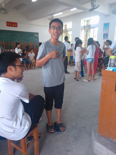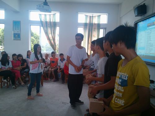 最开始的是回味经典小游戏——抢凳子。欢快的歌曲演奏着,同学们围着凳子团团转。忽然,声停,人动,占凳,反应慢者被淘汰。抢完凳子后,学生们选老师。然后就是正式的游戏,第一个是数字抱团,可能还是刚进青春期的少男少女,对异性都是比较羞涩,最后以三个男生的胜利告终。第二个是猜歌,由于每组的老师都有3次猜歌机会,所以刚开始当然是“阅历”更多,或者说是听歌更多的老师们抢尽风头,不过随着老师次数用完,接下来都是学生的舞台,有一个男同学听歌应该挺多,猜对了挺多歌,倔强、没有如果、会呼吸的痛……被我们叫做歌王。过后是欢乐无限的你画我猜,面对各种词,大家做出各种搞笑的动作,笑声连连。再接着是借物游戏,大家的手忙脚乱的找东西,还有一个男生跑过问我“老师,什么叫人字拖”,我哈哈笑着说“就是夹指拖鞋啊”,然后那个男生眼利地看到了我们的队员的脚上的“人字拖”,笑嘻嘻的借去了。