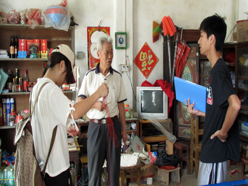 今天,烈日炎炎,跟随调研组来到了又一个调研目的地——鸡篷村。沿路逐户地做调研,久了,每一步都汗水淋漓,我们来到了一家便利店坐下乘凉,队员也在此顺便聊天式地跟老板夫妇做调研。老板夫妇亲和热情年过六旬的老人,脸上总是挂着慈祥的微笑,让人好窝心。