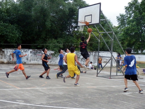 不料下半场一开始,阳光翼旅的男生们似乎被领先的10几分冲昏了头脑,当然,我们也不能小看了山里的村民们,尽管放眼望去,他们没有整齐的服装,没有响亮的口号,甚至年龄也参差不齐,但是,在山里长大的人却拥有城市人不能比拟的身体素质,显然,他们的体力要比阳光翼旅的男生好得多,半场一开始,就打了个12-2的进攻小高潮,博得场边的本地学生和村民阵阵呐喊。看着翼旅的男生们被打懵了,我们场下的观众都有点担忧了,但在田心居民的鼓舞下,村篮球队越战越勇,渐渐的把分差拉开了……