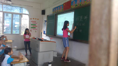 作为宣传组的一员,我很高兴我能在各个组之间游走,记录队员们与小朋友精彩瞬间,就让我这些许的墨水来描绘、来表述一个充满心酸汗水而又充满温情的三下乡。与小朋友的初次见面比想象的要简单,而交流起来也没有我初步预想的困难,这是一个好的预兆,至少我是这么觉得。初次见面是早上起来从二楼往一楼看时,小朋友早些来的已经在一边玩耍,或是在课室里走动,甚至有些调皮的孩子还带了扑克牌来学校,就在下面打牌……这就是我的初步印象,记得我当初的评价是:“果然还是孩子啊,连扑克牌都带来了”。之后我们全部都下去与小朋友们交流,并且引导他们进入各自早已安排好的教室,等候老师(我们义教组成员)的指导。相互介绍,相互认识,相互了解,由此,我们与小朋友之间的羁绊就开始了……