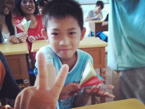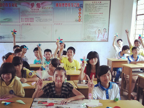 今天自己有两节手工课,早上在初一下午在初二。这些可爱的小孩纸对手工充满了热情,不仅一步一步的照着我们的教法做,还加入了很多自己的元素,折完花后加了叶子加了枝茎,在飞机上写上型号,最后还签上自己的名字送给我和诗雨。他们总是笑着喊我们:“老师老师,我还要彩纸。”“老师老师,再教一种。”“老师老师……”我想这就是我们来这里的意义所在吧,帮助他们找到自己的兴趣,把他们从繁重的课业中解放出来,多一点发现生活中的美,有更多装点自己生活的机会。