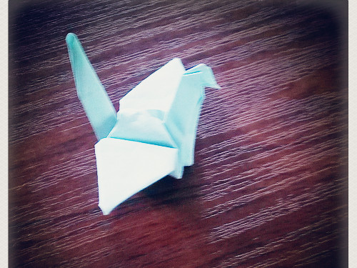 早上小理恒跟我说:“老师,送你一只纸鹤。”他给了我一只他自己折的蓝色纸鹤,虽然对于我们来说,纸鹤可能是简单得不能再简单的折纸,但是对于他们而言,这却是最直接最能够表达他们心意的东西。他笑着把纸鹤递给我的时候,我真的打心底笑了出来。