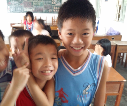 这是我的熊孩子们中的一个可爱而又腼腆的小男孩,他叫陈世豪。上课的时候他坐在角落里,别人争先恐后地抢着发言,他却只是睁大眼睛直勾勾地看着我。为了让每个孩子都有机会表现自己,偶尔我也会故意叫他起来回答问题。过了几天,竟也让人惊喜地发现他开始主动举手了。接下来的每一节课,他也加入了积极抢答的行列。我以为他本质上应该也是一个活泼的小朋友,只是一开始对我们陌生才安安静静不发言,也没有太多在意。后来,在他写给我的留言里我发现自己又想当然地误解了真相。他说:“姐姐,我本来是不敢举手发言的,但遇到了你,使我变得大胆了。”这话很朴实,很纯真,无半点矫揉造作,却让我得到了大大的满足。还有个一直特别装坚强的孩子说我教会了她流泪。每一个孩子都说特别感谢我们的鼓励跟关心。这一切的一切,真真切切让我感动又感激。在这一刻才终是体会到下乡的意义。我们不要感谢,也不求孩子们经过十几天的相处就能发生翻天覆地的改变。只需要他们感受到我们的关怀,给我们一片真诚,会因为我们的鼓励而勇敢地踏出以前自己不敢尝试的一步,那就足够了。我们的队歌一直在唱最好的未来,或许我们无法许诺这十几天会对他们的未来起多大作用,但至少,我们能把我们最好的现在毫无保留地教授给他们,让他们的现在也是最好。