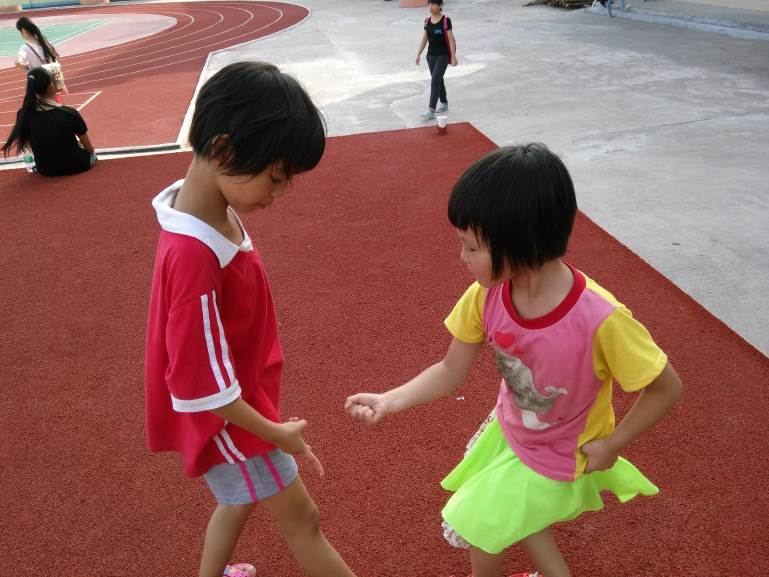 首先第一项比赛是大小星星迎面接力跑。要求小星星们分开两队站一边,大星星们也均分两队站在另一边,在裁判喊“开始”后,便由小星星开跑接力。比赛开始了,小星星们都撸足了劲,男生们拼命往前跑,以求在最短的速度内把手中的接力棒交给大星星;女生们虽然体力不那么好,但仍是咬紧牙关不曾停歇地往前。而大星星们呢?他们也毫不相让,在小星星们的呐喊下,你追我赶,奋力奔跑。