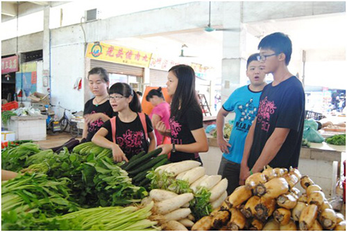 在后勤,最为重要的便是一日三餐填饱肚子,在一日三餐中,最为重要采购食材和掌勺煮菜过程。经过第一天的惨痛经验,后勤采购人员与掌勺人员慢慢配合的接近完美。提前一晚,由掌勺人员决定第二天的菜式及购买份量,虽然有时会为了让班上的人吃一顿可口的饭菜而挠破头皮,但是在煮完菜后看到那一碟碟看相不错的菜后自豪感油然而生。为菜式而深夜卧谈,为做菜而汗流浃背的日子也就值了。第二天,浩浩荡荡的采购人员根据所提供的物资清单前往集市,一分一毛,砍价过程中蕴含着大学问,与老板老板娘的沟通显得尤为重要,彼此双方都在维护各自的最大利益。虽然为讲价来来回回几次,脚累口累,但拎着大袋大袋的沉甸甸的物资,心也是满满的。