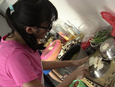 买完菜回来就到了后勤组的重头戏了——做饭。厨房设施不错,就是炒菜的炉子只有一个,做起菜来比较慢。最后经过一轮风风火火的战争,大概两个多小时后后勤组的第一顿饭终于摆上了餐桌。不过经验不足,菜煮多了,还好我们可以用学校大叔的冰箱。顺便提一下这位学校大叔,他就是这里的百事通,为我们解决一切可以解决的问题。
