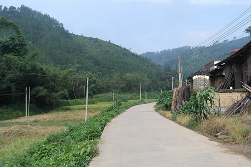 大巴在起伏的路上缓缓的向前行驶,马路很窄,路中间有一道又一道黄色的线,像是一种指引。路的两边是苍翠而笔直入空的树木,树的那边是稻田,有的已经开始收割,有的还在随着微微的风摆动,远处是山脉,山上的植被很茂密而浓绿,山顶上缠绕着朦胧的雾,让山看起来更加的美不胜收。除了缓缓行驶的我们,一切的一切都是那么的静,色彩是那么的鲜艳。一直盯着窗外,我感觉自己仿佛是走进了那种弹奏着钢琴曲的法国电影里的场景。