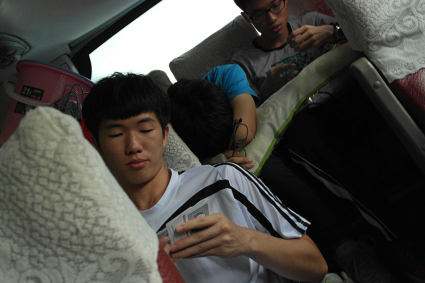 很久后,终于,大家都将将沉甸甸的行李搬到了车上,擦着汗水,嘴角上扬,我们,出发了!