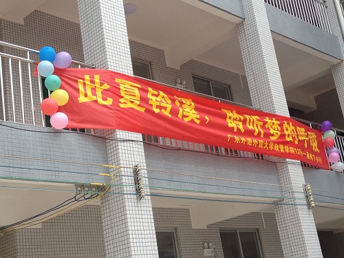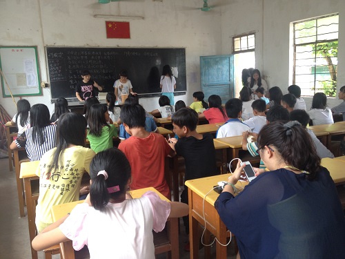 回想起第一天寿场中学里举行的开学典礼,简陋的楼房上挂着醒目的红色大字“此夏铃溪,聆听梦的呼吸”,旁边挂着几个彩色的气球,在阳光下照耀下,闪闪发亮,五彩缤纷。孩子们陆陆续续地参加报名,他们报名后坐在一起说着,笑着。记得当下一种特殊的感觉洋溢心头。一刹那觉得我们之前的努力都不是白费的,队员们下乡之前多少个没日没夜的日子都是有值得的。队长们和校长发言中不断反复地提到中国梦。一个人都需要有自己独特的梦想,可以是升官发财,可以是环游世界,可以是组织一个幸福的家庭,可以是有自己的事业王国,可以是建一所学校,可以是......梦想可以很多种,但是我们都必须有一个梦想,激励着我们前进的脚步,激昂着我们的行动。这些孩子生活农村,或许,他们的起跑线输了,但是,我们相信经过这十几天的日子,他们懂得了每个人都有追寻己梦和幸福的权利。世界很大,机遇很多。