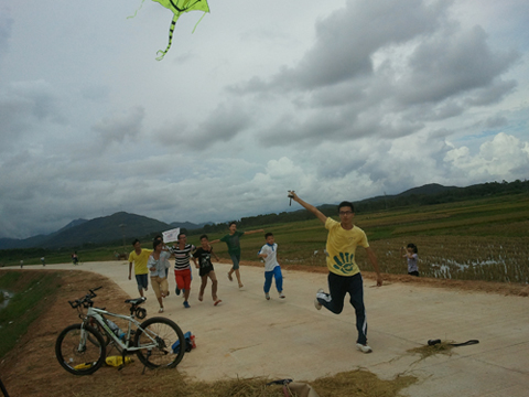 首先入镜的是年轻貌美的姑娘们,我们按身高大小依次站成一列,走到稻田中间,让蓝天白云、金灿灿的稻田给我们作陪村,尽情地舞弄各种姿势,要把我们心中的喜悦以及生机勃勃的一面展现在镜头前。然后是放着风筝在大道上追逐的画面。泽强牵着冉冉升起的风筝,和志超在前面跑,后面跟着一群小孩子,他们尽情地绽放着笑脸。刹那间,天空中展翅飞翔的风筝、若隐若现的高山、一望无垠的稻田,还有追逐嬉戏的“大小叮铛”,人和景融为了一体,一幅其乐融融的画面成了和谐的画卷。此情此景,是多么的让人陶醉!