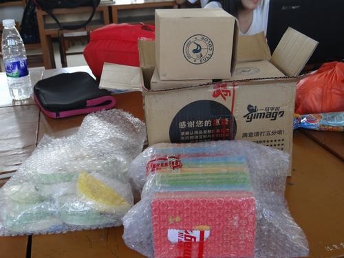 大家来猜猜这是什么?对了,就是奖品,大家有没有很想要啊?哈哈,这是给学生们的,大家就别抢了咯~