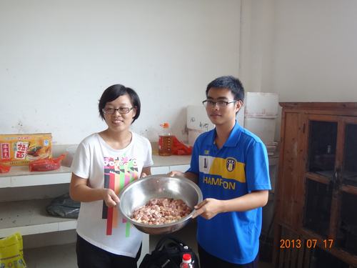 回到厨房,我们的工作就开始了。我们边说笑边干活,乐趣多多。很多有趣的事情,很多不可告人的秘密都在这厨房上演,这里有辛酸,更有欢乐。有空的时候到后勤走走还真的不错。据调研组的同学回来反馈说,其他班基地的情况都不如我们的好,他们没有床位,要睡教室;他们有的还要生火做饭。听着他们这样说,感觉我们真的好幸运,好幸福。我现在真的没有任何理由对这里的条件再有任何的抱怨了;因为我不仅有好的条件,还有一个好的团队,一个很有责任心的队长。