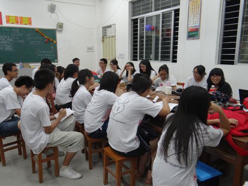 我们每天晚上都会开一个简单的总结会,总结一天的问题,大家一起寻找解决的方法,并且对今天做得好的地方加以鼓励和表扬。今天晚上,儒洞中学的领导梁书记也出席了我们今晚的总结会议,为我们的工作提供了很多的帮助,也给了我们很多有用的建议。最后,在梁书记与我们相互的交谈和认识中,结束了我们的总结会议,也为我们一整天的工作画上了圆满的句号。