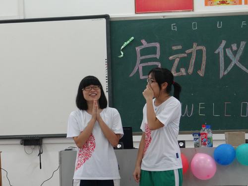 接着,七月流火服务队队员轮流上台做简短的自我介绍。队员们的自我介绍形式各异,幽默搞怪,现场气氛一下子被调动起来。在孩子们的欢笑声中,我们看到了他们对接下来的学习生活的无比期待。
